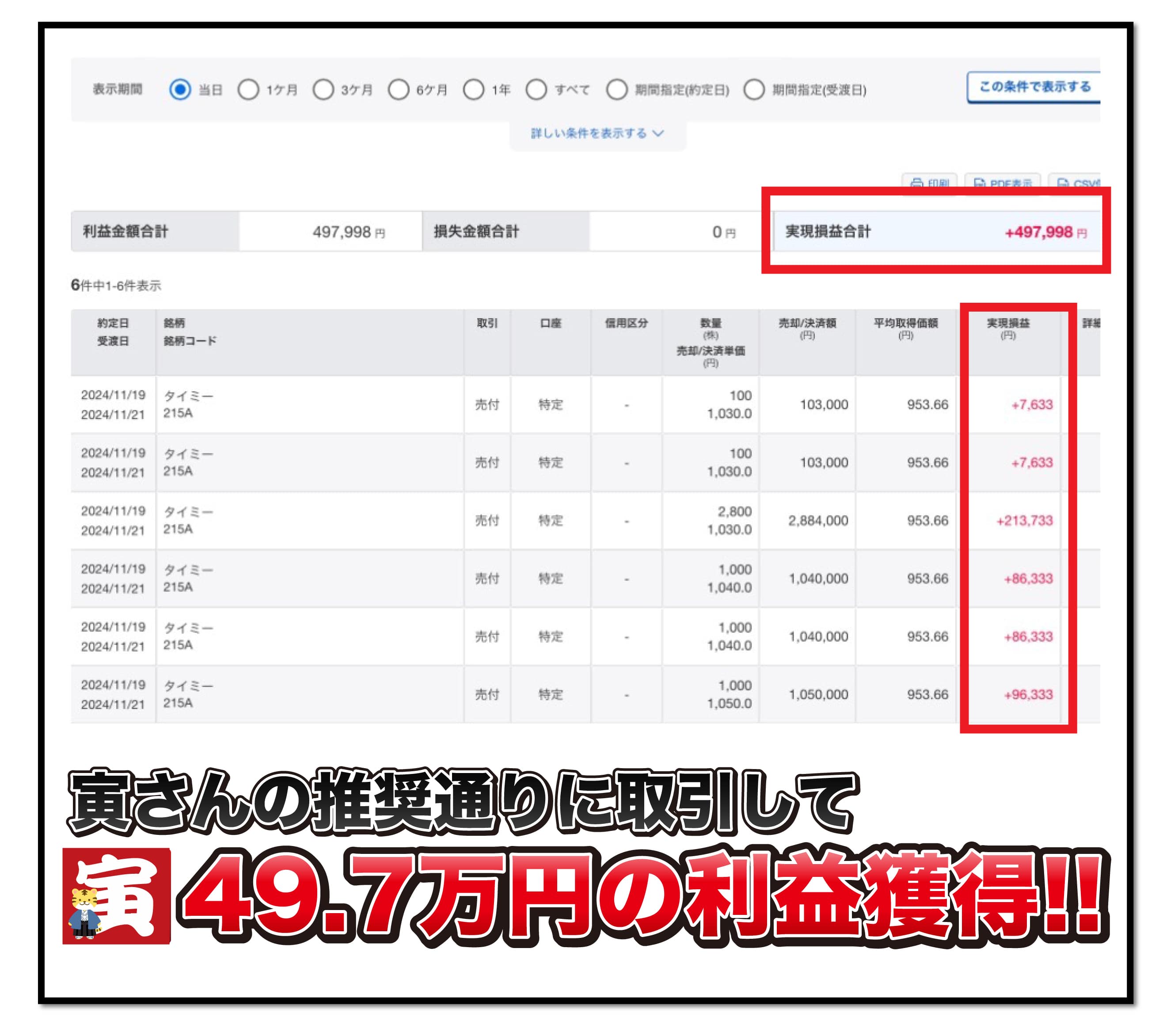 実際の投資商品の売買におきましては、自己資金枠等を考慮した上、ご自身の判断・責任のもとご活用をお願い致します。国内上場有価証券等には株式相場、金利水準、為替相場、不動産相場、商品相場等の価格の変動等および有価証券の発行者等の信用状況(財務・経営状況を含む)の悪化等それらに関する外部評価の変化等を直接の原因として損失が生ずるおそれ(元本欠損リスク)、または元本を超過する損失を生ずるおそれ(元本超過損リスク)があります。